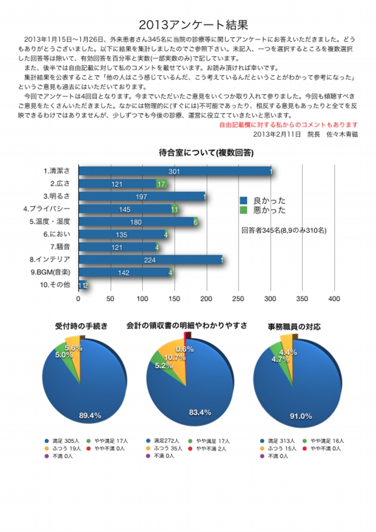 皆さんからのご意見・ご感想と私(院長)からのコメント