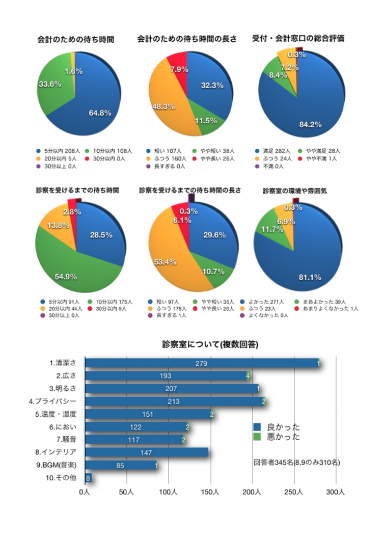 → いえ、ありません。待合室と同じ選択肢にしてしまいました。なお、アンケートの初日は、8.インテリア、9.BGMの選択肢の無いアンケート用紙を配布してしまい、そのため他の選択肢に比べて回答者数が少なくなっています。来年は気をつけます。